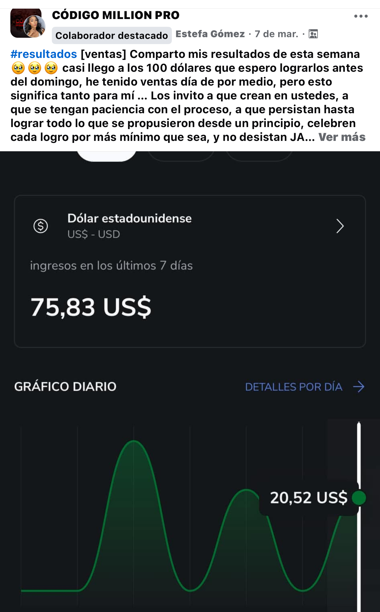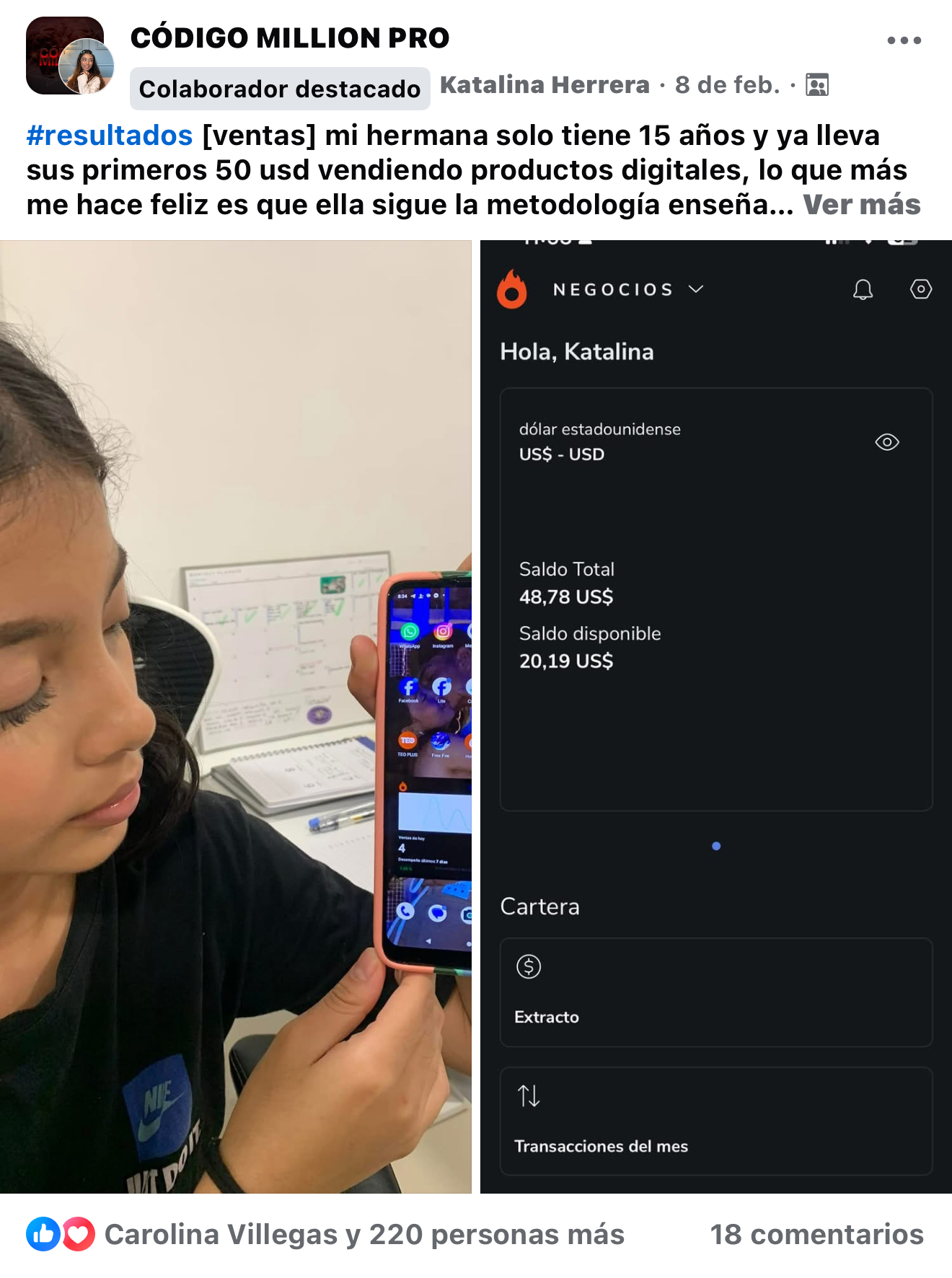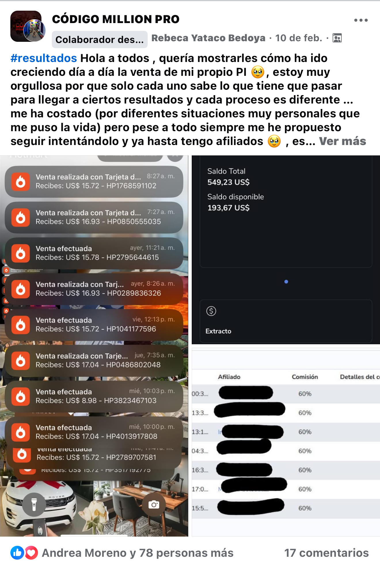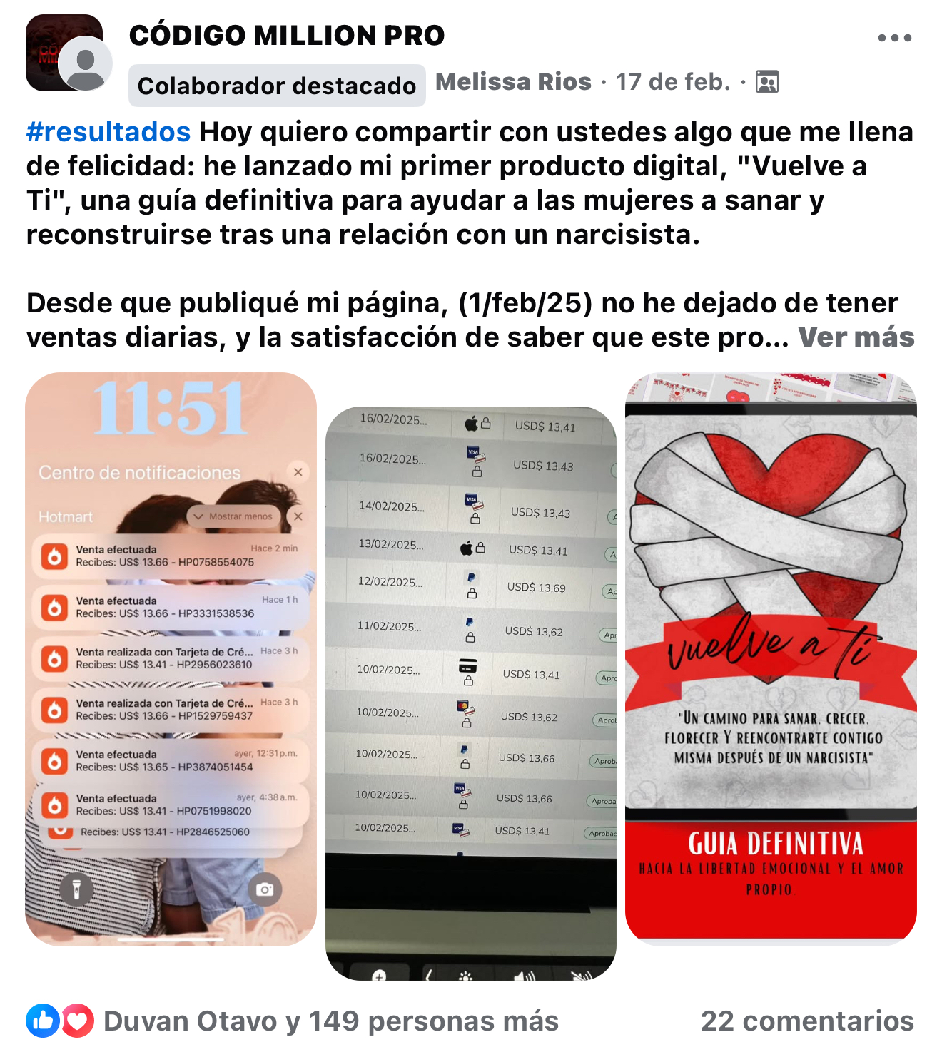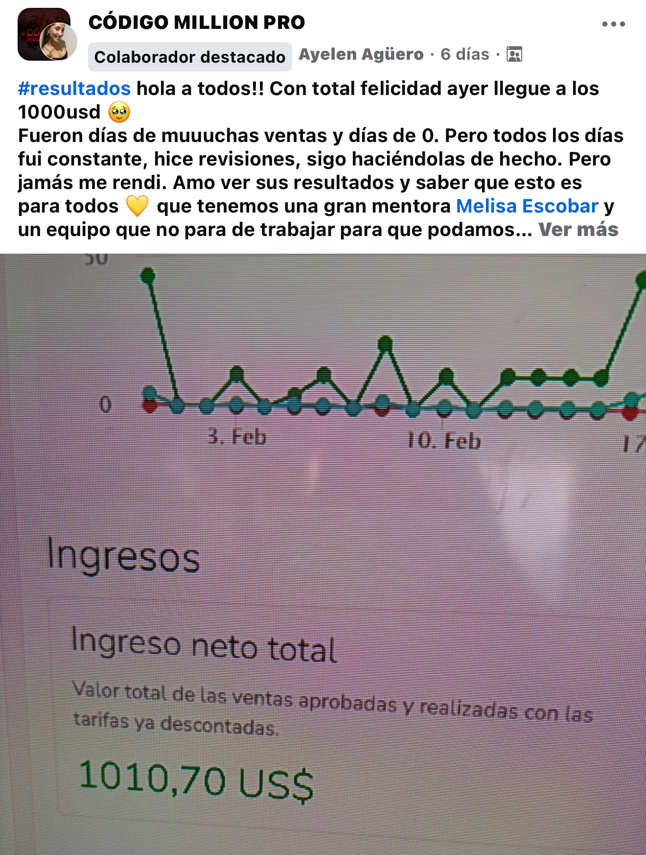 Código Million Pro fue creado por Melisa Escobar, emprendedora digital con resultados comprobados en la venta de productos creados con inteligencia artificial.